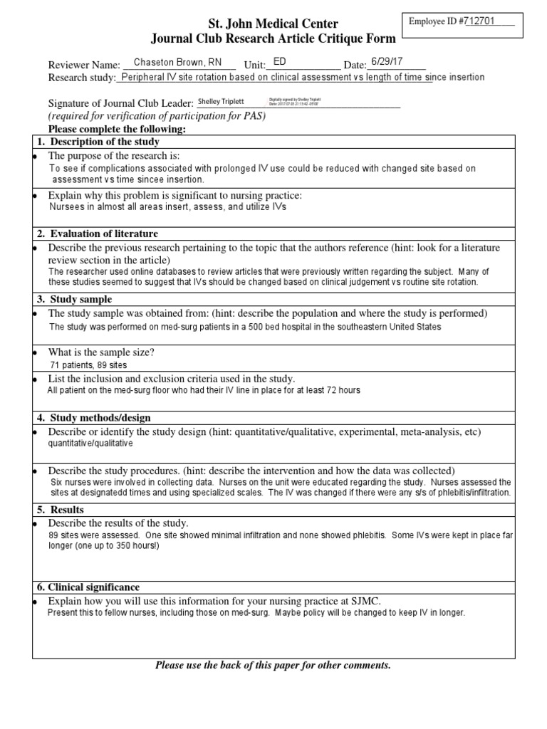 The study has a clear title and abstract statements. Example, a threat to both internal and external validity would be the sample selection process. Terminology in research can be confusing for the novice research reader where a term like 'random' refers to an organized manner of selecting items or participants. (2010) critique of a qualitative interview study of nursing pain management in hospitalized patients receiving cancer treatments. Essays.io ️ qualitative study, article critique example from students accepted to harvard, stanford, and other elite schools. To enhance the validity of the data, it was analyzed by two different researchers independently of each other. I voiced my indifference when asked and supported my ideas. This is also true for nursing. My book karabo qualitative methodology preview text running head: This is not an example of the work written by our professional essay writers. Critique on a qualitative research article a qualitative study of nursing student experiences of clinical practice nusrat post rn b.sc year 2, semester 3rd madam nasreen ghani assist, professor ins, kmu dated: These are determined by analyzing the strengths and weaknesses of the report (brockopp & tolsma, 2003, p. The articles should be less than 5 researches old and different from those of your classmates.